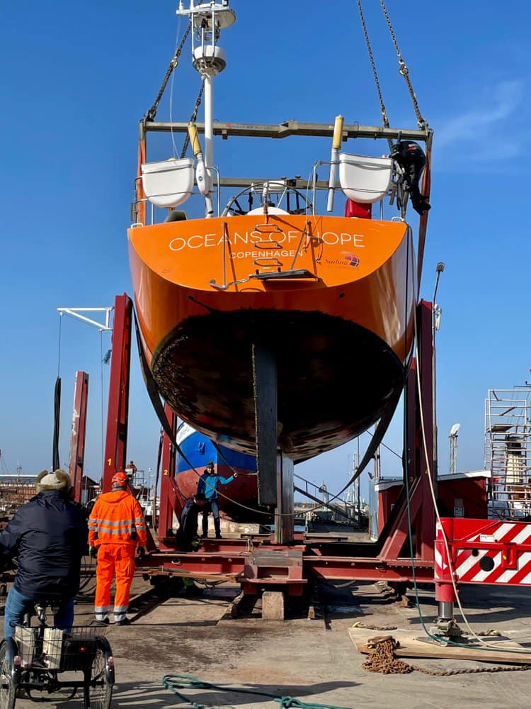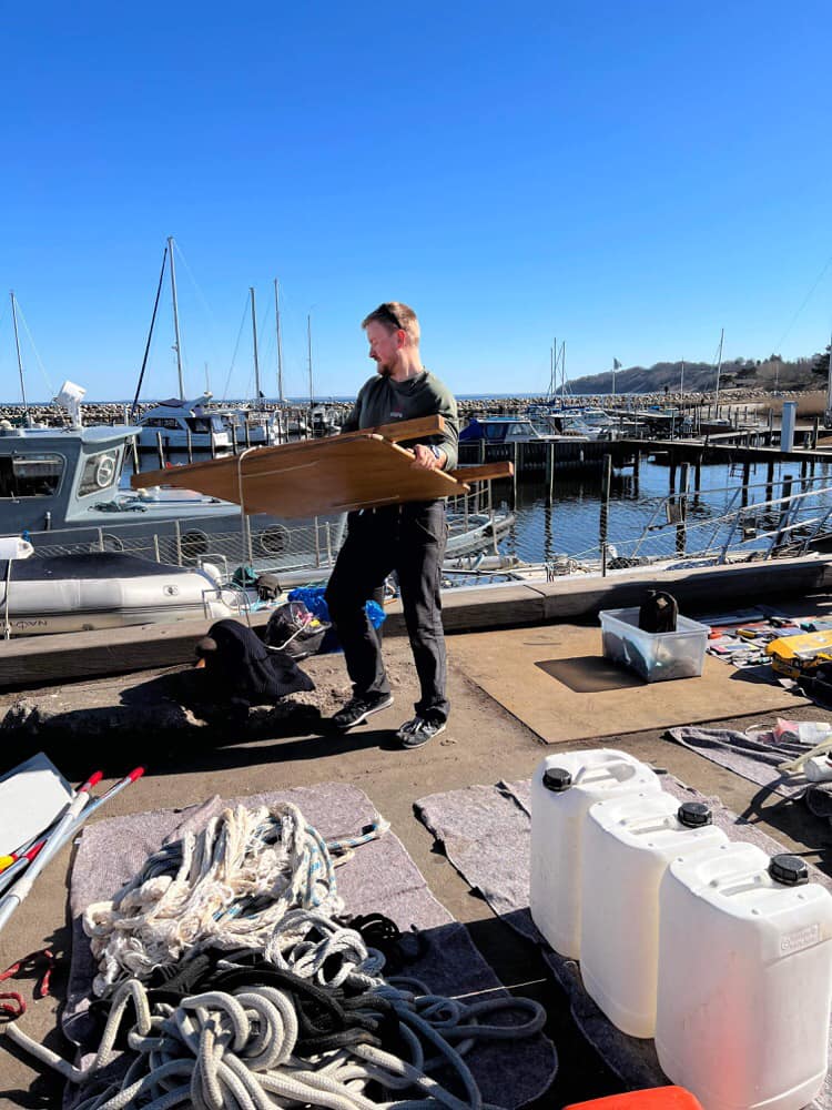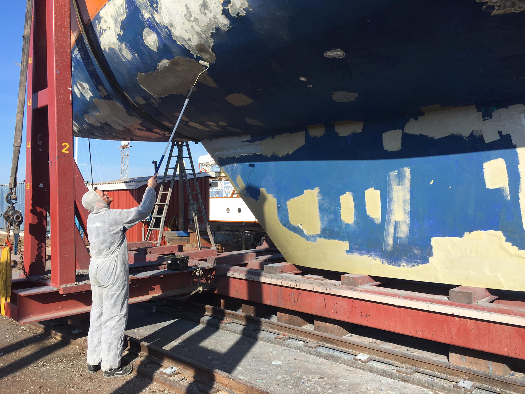 De sidste par måneder har båden ligget på værft i Gilleleje, for at blive klar til årets sommertogt for mennesker med sclerose. Båden er blevet slebet og malet og har fået en ny motor.