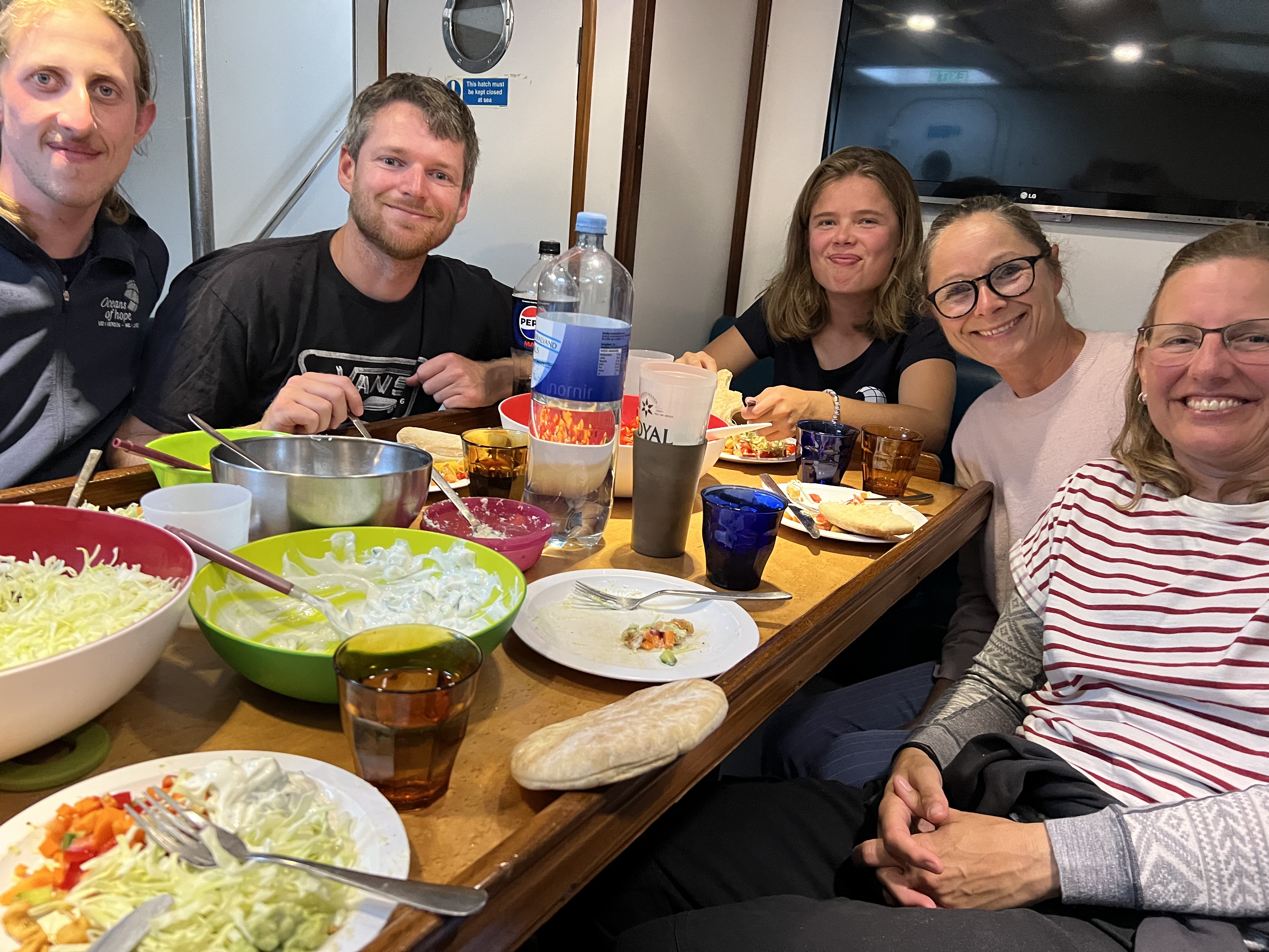 Ellers stod formiddagen på fælles rengøring, hvilket var nemt klaret, fordi vores matros David har været sød at rydde op efter os.
